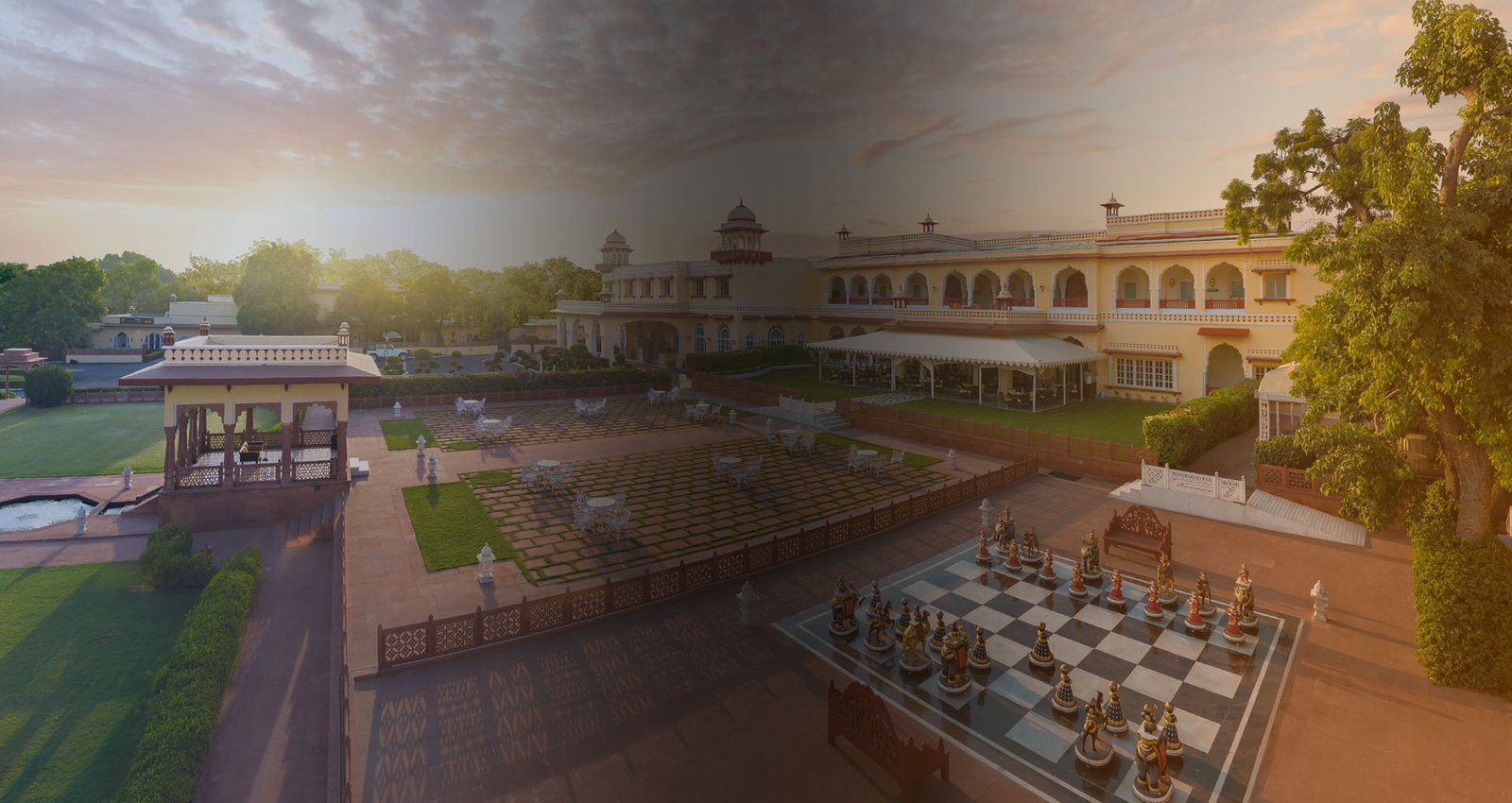 Aerial view. Main Facade. Marble Arch Restaurant and Chess playground